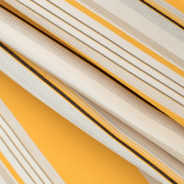 Tessuto non impermeabile per tende da esterno, protegge dai raggi solari e non scolora, se esposta alle intemperie può bagnarsi, ma si asciuga rapidamente.