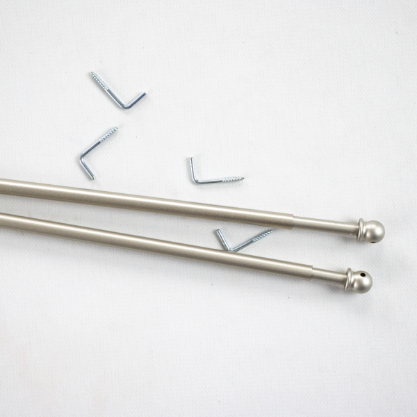 Descrizione Bacchette estensibili per tende a vetro con gancetto a "L". Ideale per serramenti in legno e in pvc. Applicando il paletto anche nella parte inferiore si otterrà un pannello perfettamente teso.