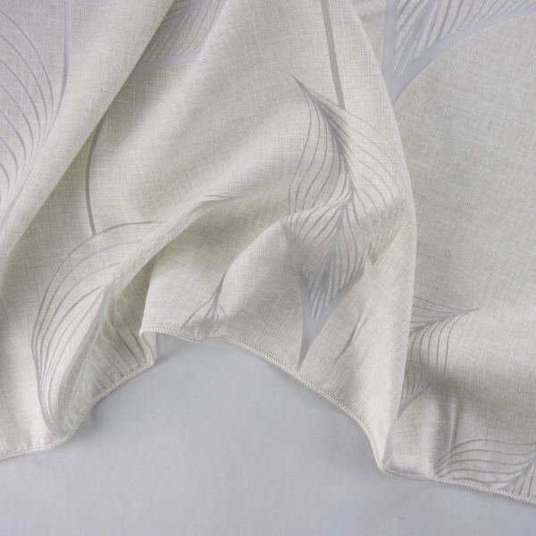 DescrizioneTenda in altezza 300 centimetri e rifinita con un “piombo” sul fondo che le da il peso necessario per rimanere tesa. Tessuto di media-leggera pesantezza con lavorazione in devorè su base beige. La stampa devoré è una lavorazione con la quale si corrode chimicamente una parte del tessuto per eliminarne una parte e lasciare a vista un disegno. E’ per questo che si chiama anche stampa con effetti in trasparenza. Questa tenda è di forte impatto decorativo per il contrasto tra l'aspetto trasparente e delicato e i motivi coprenti che sembrano quasi ricamati. Il tessuto è consigliato per sale da pranzo, saloni e camere da letto.