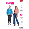 DescrizioneUna camicetta elegante senza abbottonature elaborate: scollatura sofisticata e gli ampi bordi delle maniche danno tono a questo modello. L'elegante camicetta in raso (di seta) utilizza effetti opachi/lucidi e lo spacco dello scollo è piegato come un risvolto. I polsini elasticizzati sono un'alternativa moderna. Tessuto consigliato: batista, seta, viscosa per BI e crêpe per BII.