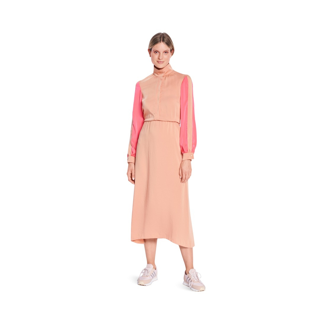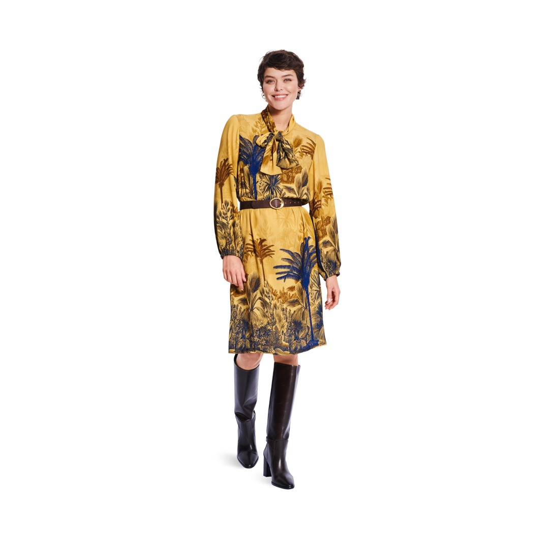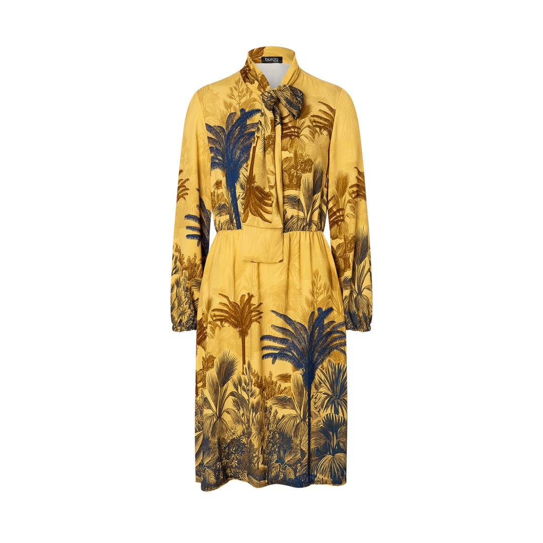 Questo modello di abito offre due varianti chic, perfette per le sarte esperte! Il primo modello fonde elementi sportivi e femminili con un colletto alto, abbottonatura nascosta e gonna a campana, il tutto impreziosito da righe colorate e color block. Il secondo modello è versatile, con risvolto e vita elasticizzata, ideale per una cena, l'ufficio o una festa. Abbinalo a un blazer e tacchi, oppure scegli un look casual con delle ballerine!