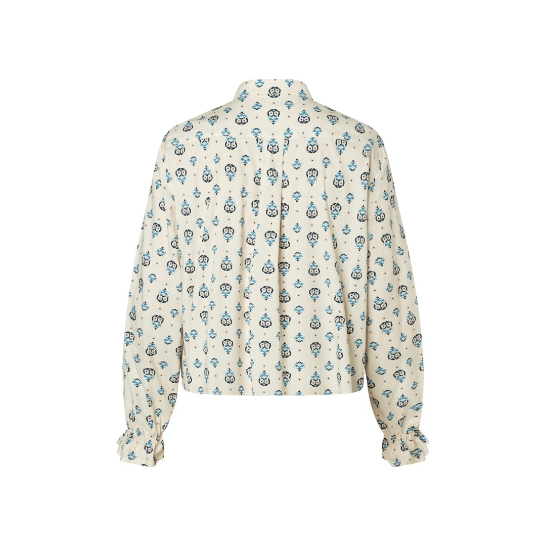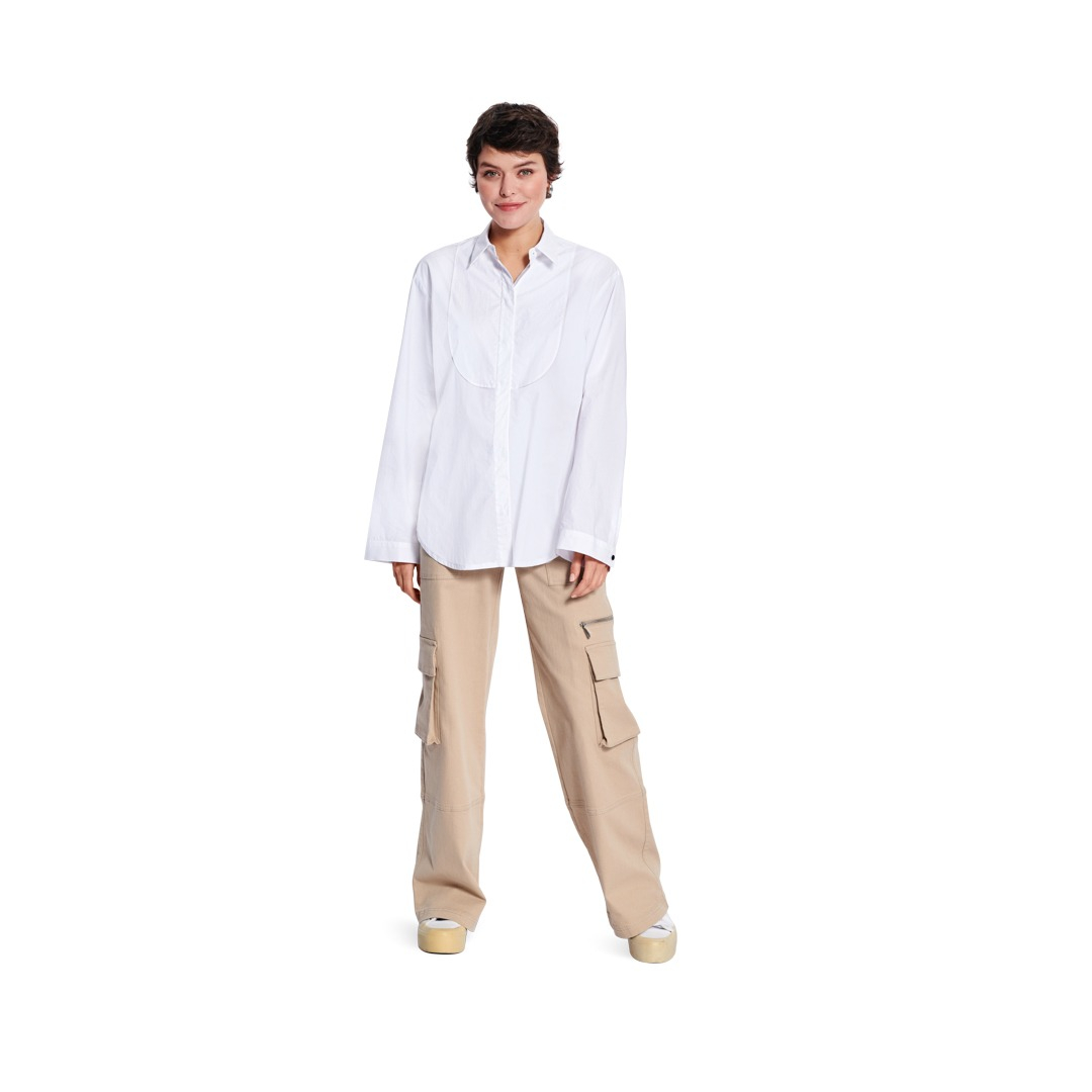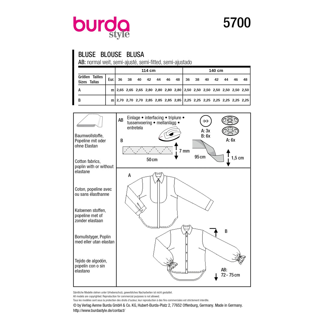 Questo modello offre due splendide varianti di camicetta! Il modello 1 incarna l'elegante stile smoking con plastron, abbottonatura nascosta e polsini ampi con bottoni vistosi, ideali per un look senza tempo. Il modello 2 presenta un taglio scandinavo rilassato con una stampa romantica e volant XL sulle maniche per un tocco giocoso. Entrambi sono facili da cucire e sicuramente faranno girare la testa!