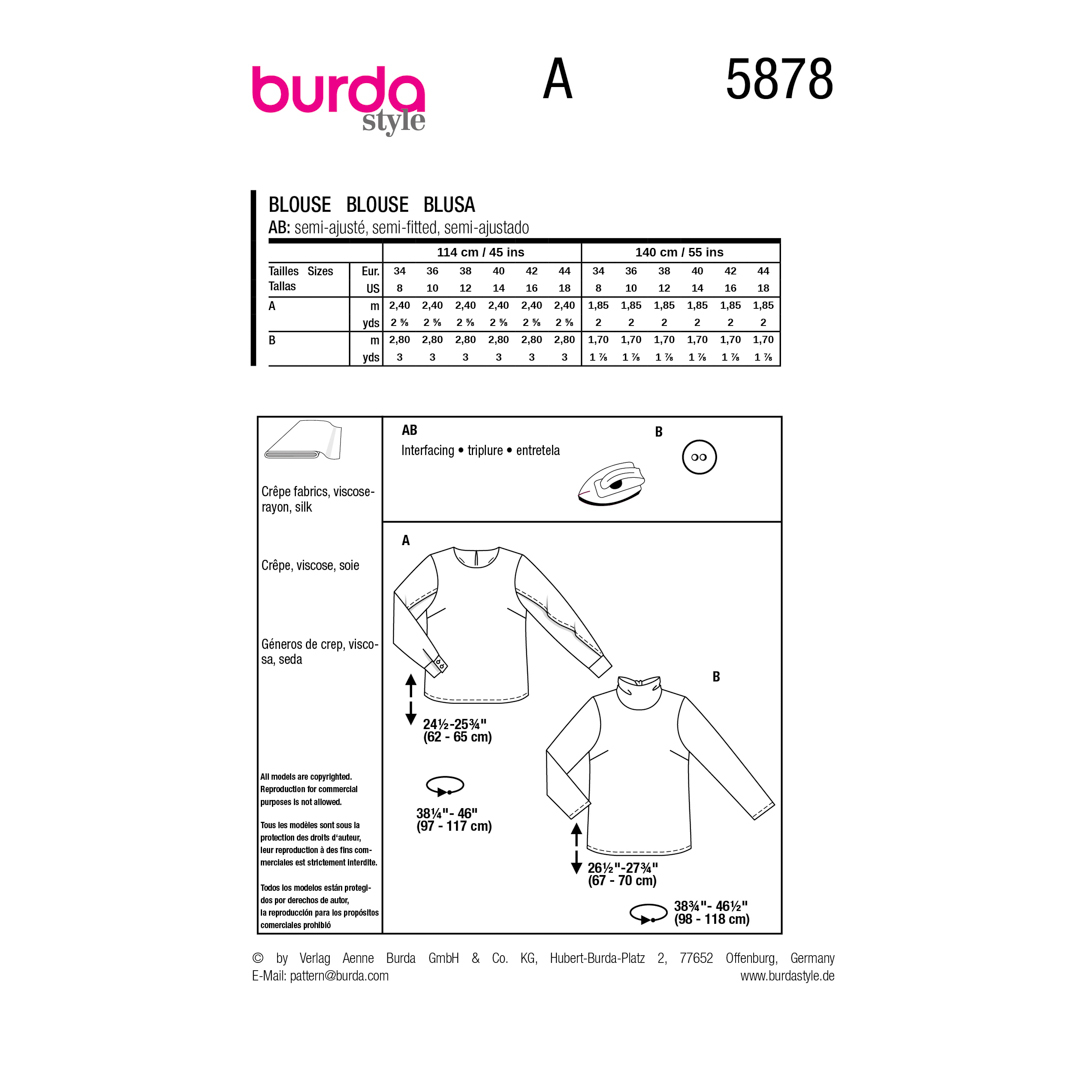 Due camicette uniche, ciascuna con un piccolo spacco sul retro per infilarle semplicemente sopra la testa. Le maniche leggermente a campana della vista A sono piuttosto decorative. La vista B presenta un grazioso colletto a cravatta e un'intelligente torsione posteriore per un dettaglio speciale.