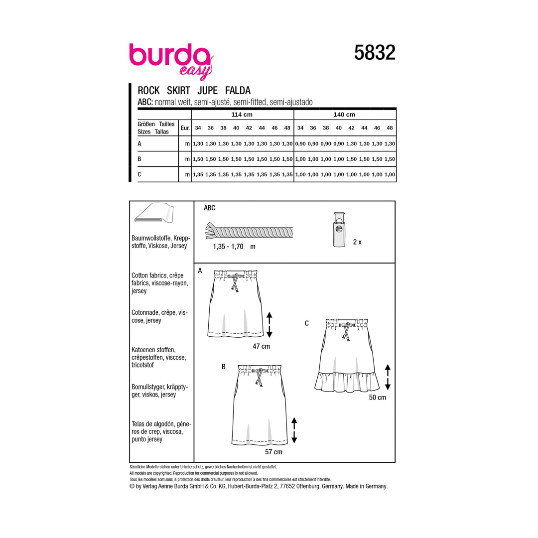 Tre semplici modelli di gonna per look da carini a sportivi. Il cordoncino in vita e le tasche rendono questi modelli i preferiti cuciti da sé. Tuttavia, ogni modello ha il suo carattere. Che sia elegante in jersey, sportiva in cotone o molto dolce con una volant sull'orlo, ecco come cuci la tua gonna preferita con questo modello burda easy!