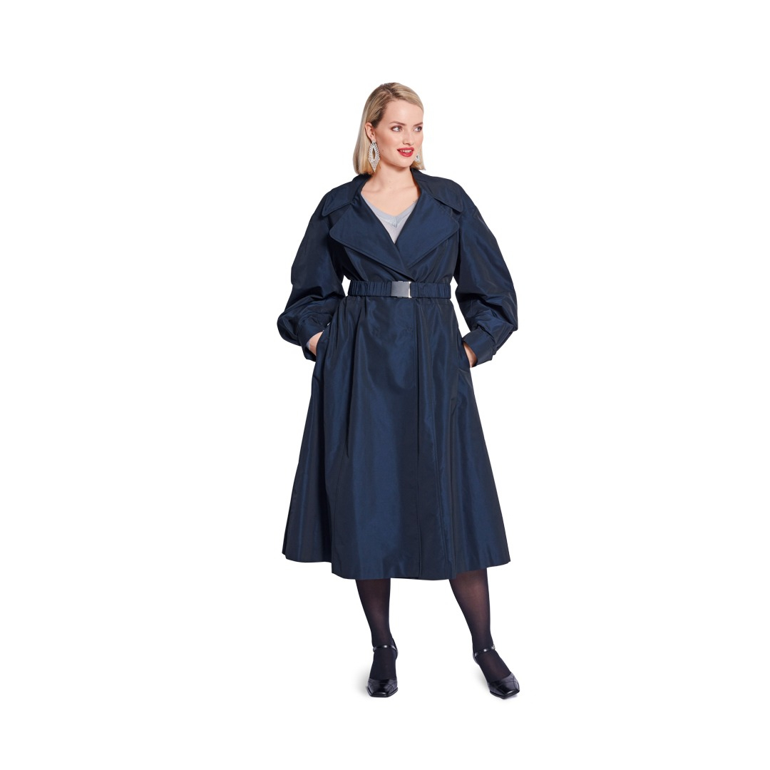 Scopri i nostri eleganti cartamodelli per abiti e camicette, perfetti per sarte esperte! L'abito chemisier presenta delicati bordi in pizzo su colletto e polsini, insieme a una gonna arricciata che esalta la figura. La camicetta colpisce per il suo elegante colletto alto, l'abbottonatura impunturata e la fluida viscosa, creando una silhouette seducente con ampi spacchi laterali.
