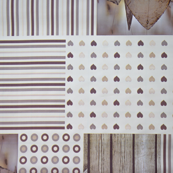 CERATA FANTASIA CUORI PATCHWORK SHABY NATURALE/TORTORA/FANGO 10x10 cm
