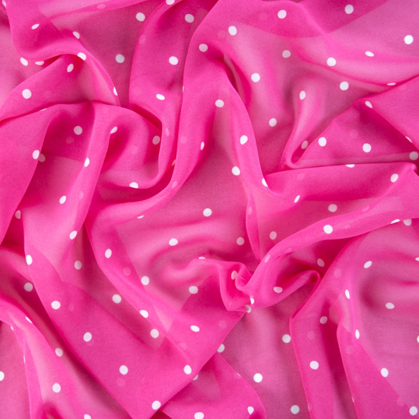 CHIFFON CREPE NICOLETTA POIS BIANCO FONDO FUXIA 10x10 cm