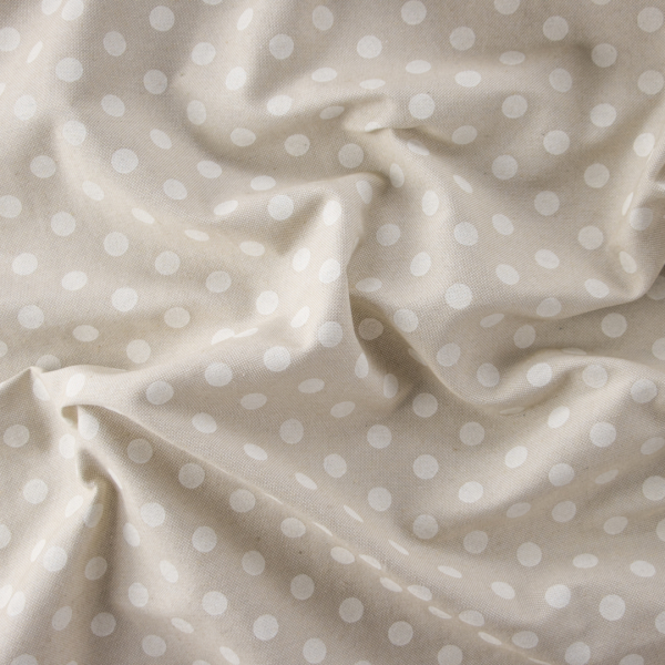 DescrizioneTessuto in misto cotone di media pesantezza, a trama fitta, con un fondo di color sabbia.
