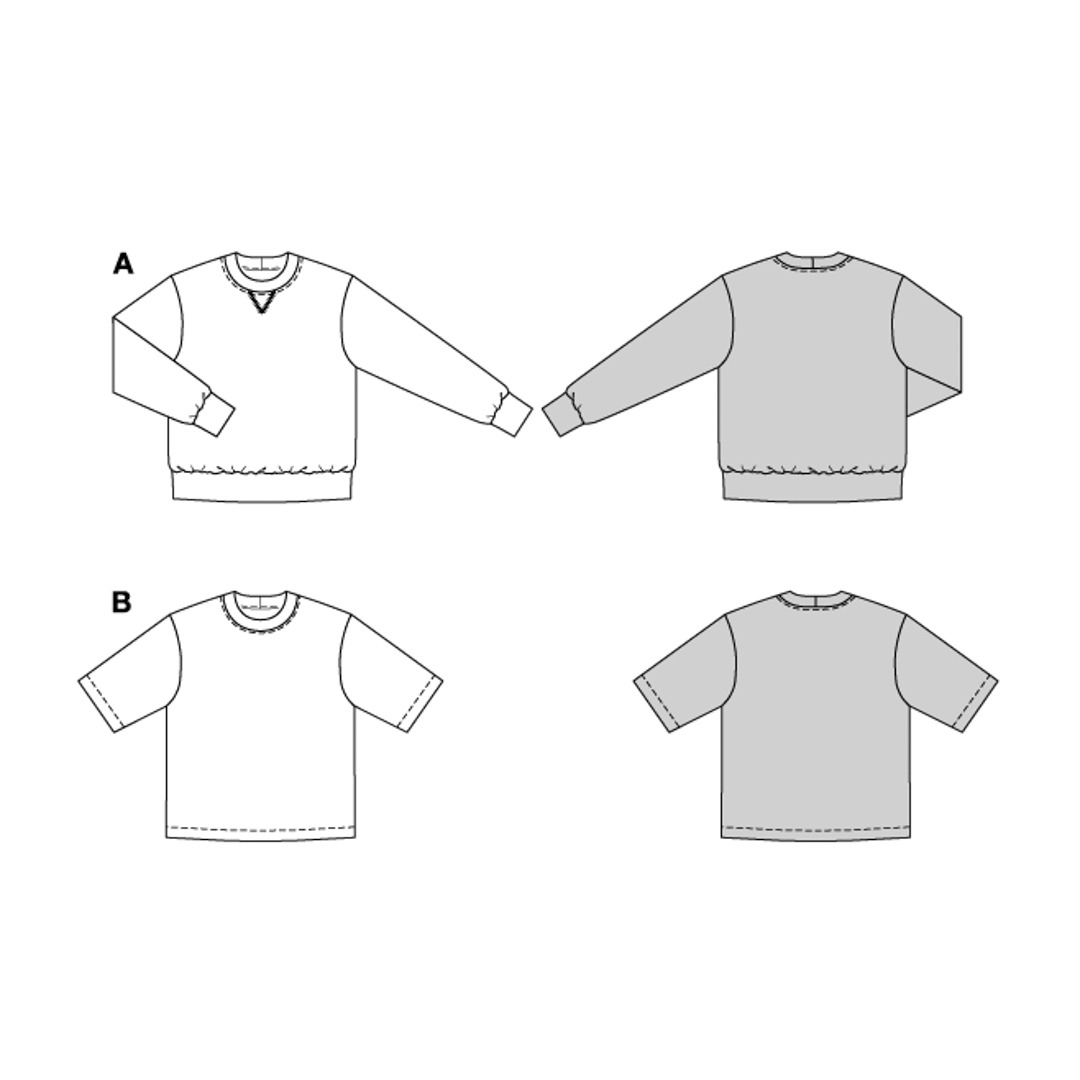 Questo modello per la nostra felpa e t-shirt da uomo è perfetto per i principianti. La classica felpa con polsini è un capo intramontabile, facile e veloce da cucire, ideale per un regalo dell'ultimo minuto! La t-shirt presenta un taglio alla moda con maniche scese e cade magnificamente se realizzata in robusto jersey. Entrambi i modelli sono semplici da realizzare e perfetti per creare capi eleganti e comodi.