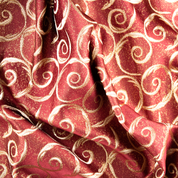 Dettagli Composizione: 100% Poliestere Altezza approssimativa: 290 cm Grammatura: 150 gr/mq Codice Colore: 0003 Colore: BORDEAUX/ORO