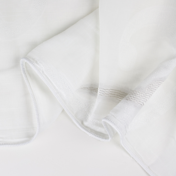 Questa tenda è di forte impatto decorativo per il contrasto tra l'aspetto trasparente e delicato e i motivi frangiati, tridimensionali che sembrano quasi ricamati.