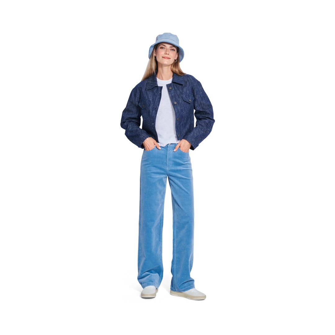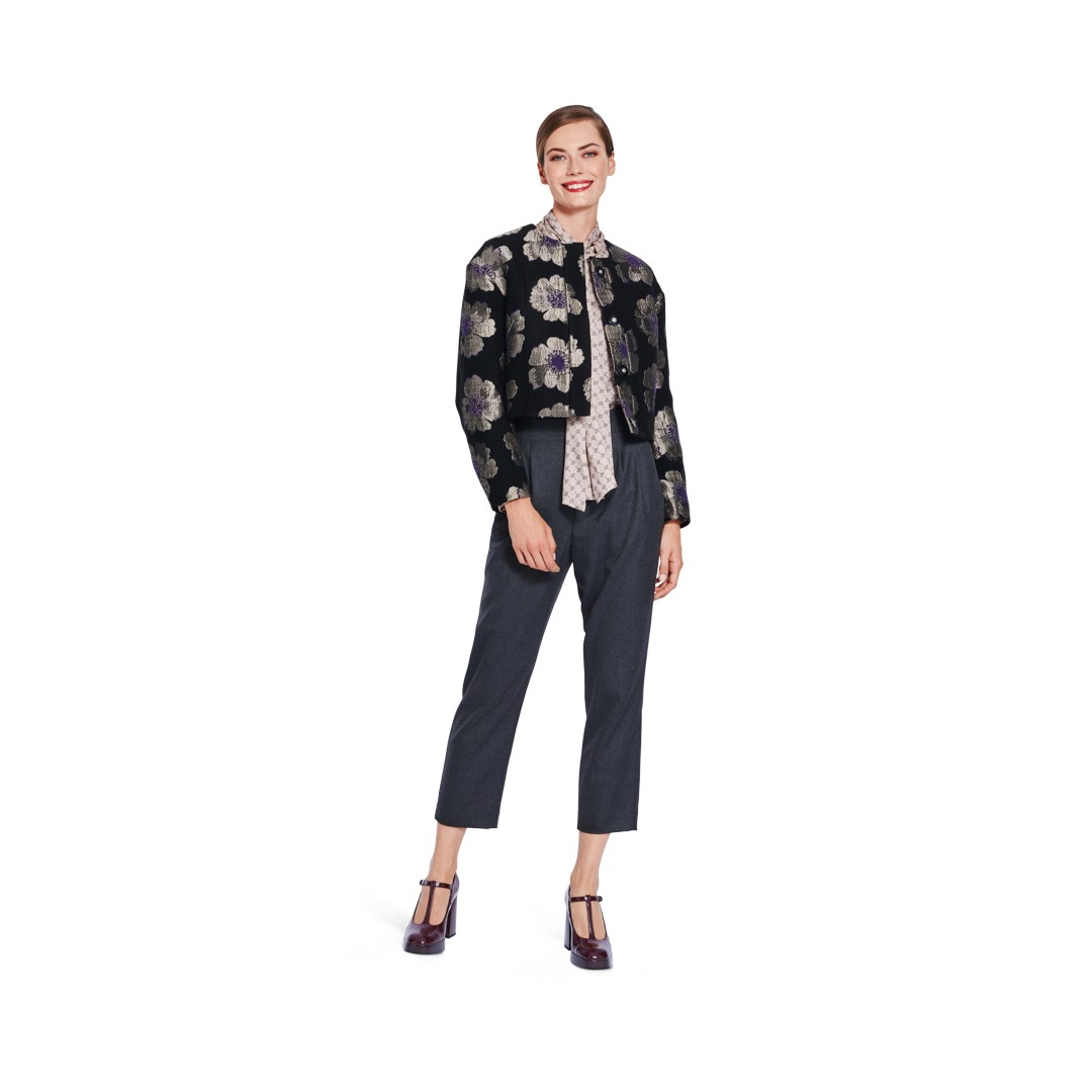 Questo modello di pantaloni offre due eleganti versioni: i pantaloni a vita alta con pieghe impunturate offrono una vestibilità comoda e slanciano le gambe, grazie all'ampia cintura e al tessuto elasticizzato. La seconda versione incorpora in modo creativo i tessuti di scarto sulla cintura, sui passanti e sull'orlo, aggiungendo fascino con dettagli di cintura e risvolti. Perfetto per sarte esperte in cerca di una nuova sfida!