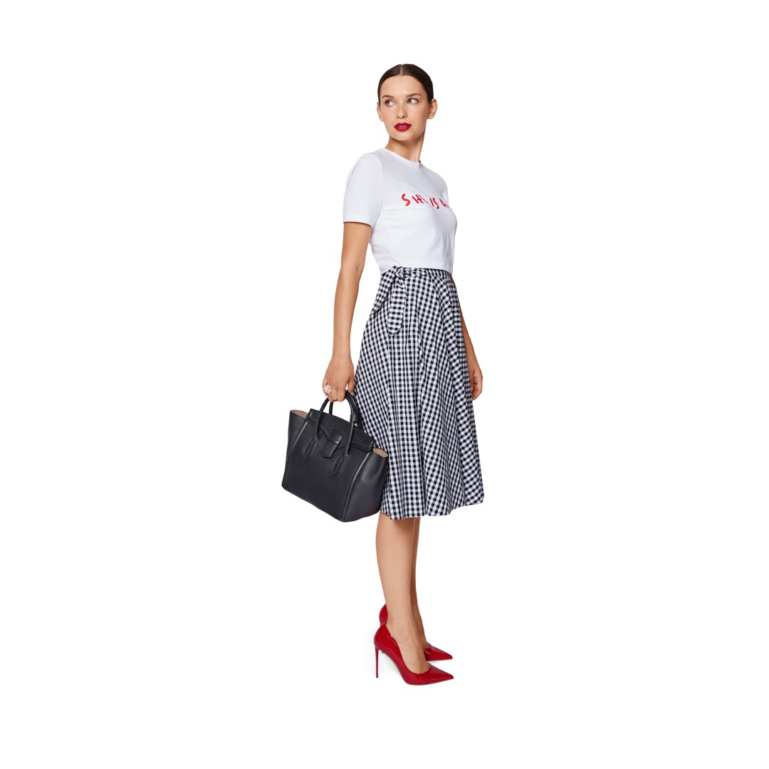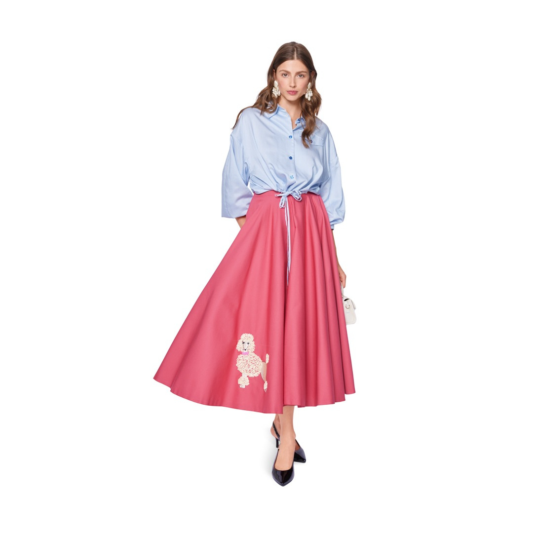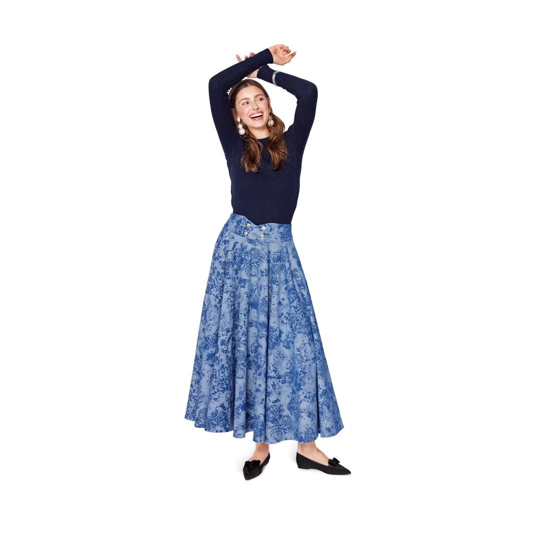 Scopri gli ultimi modelli di gonne per principianti del cucito! Il primo modello presenta una gonna fluida e svasata. Perfetta per le lezioni di danza! Il secondo combina lo chic francese e il rockabilly con una gonna a quadri Vichy lunga fino al ginocchio con fiocchi in vita. Il terzo crea una silhouette elegante con una lunga gonna svasata in denim jacquard, ampia cintura e bottoni: perfetta per le occasioni speciali!