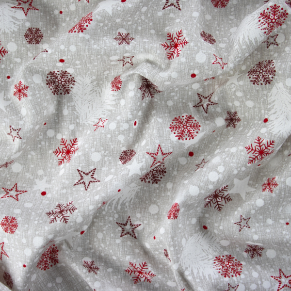 DescrizioneTessuto di puro cotone in fantasia stampata Natalizia di media consistenza.