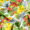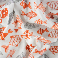 DescrizioneTessuto di puro cotone in fantasia stampata di media consistenza.