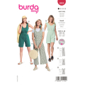DescrizioneLe tute in tre diverse lunghezze sono facili da indossare e facilissime da cucire. Ognuno ha uno spacco posteriore per lasciarti scivolare sopra e l'elastico in vita assicura una buona vestibilità. La vista C è anche dettagliata con fantasiose balze al giromanica.
