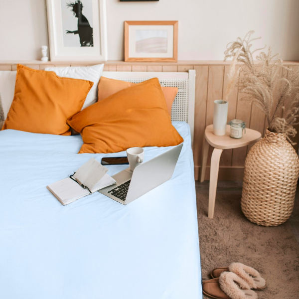DescrizioneLenzuolo in puro cotone, tinto in filo, matrimoniale con angoli