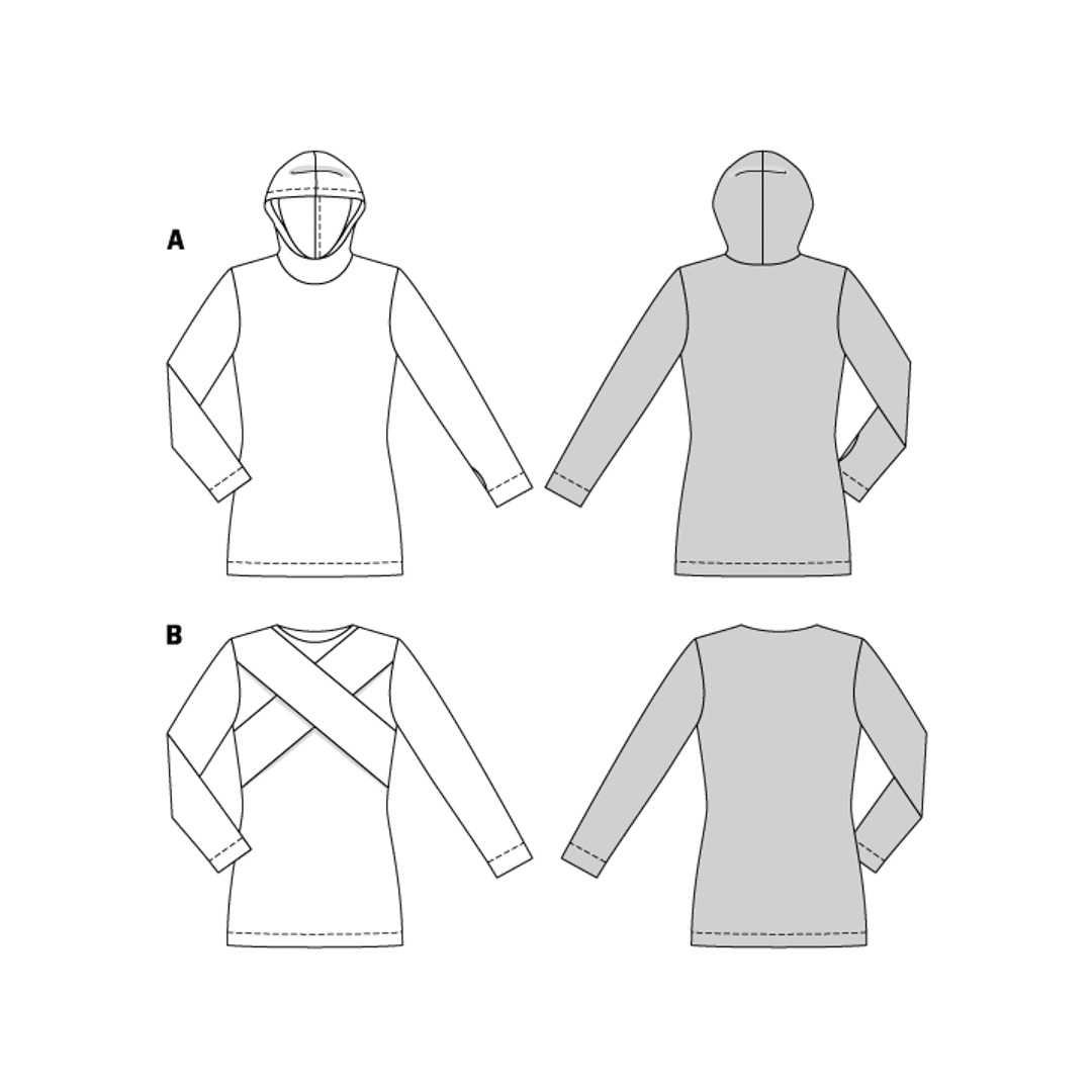 Scopri i nostri modelli moderni per pullover e camicie. Il primo modello di pullover combina il look casual della felpa con cappuccio con un taglio femminile e aderente. I piccoli fori per i pollici sui polsini delle maniche aggiungono ulteriore comfort, ma puoi anche ometterli per un look più discreto. Il secondo modello presenta cuciture incrociate, che rendono la camicia aderente un vero e proprio pezzo forte: è perfetta anche come abito elegante! Perfetta per ogni