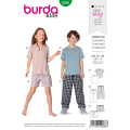 DescrizioneUn vestito popolare per l'interno e l'esterno: un top e pantaloni / pantaloni elasticizzati. Rendili corti o lunghi, questi pantaloni / pantaloni sono un ottimo capo d'abbigliamento per bambini. Tessuti consigliati: A: Jersey. BC: tessuti di cotone