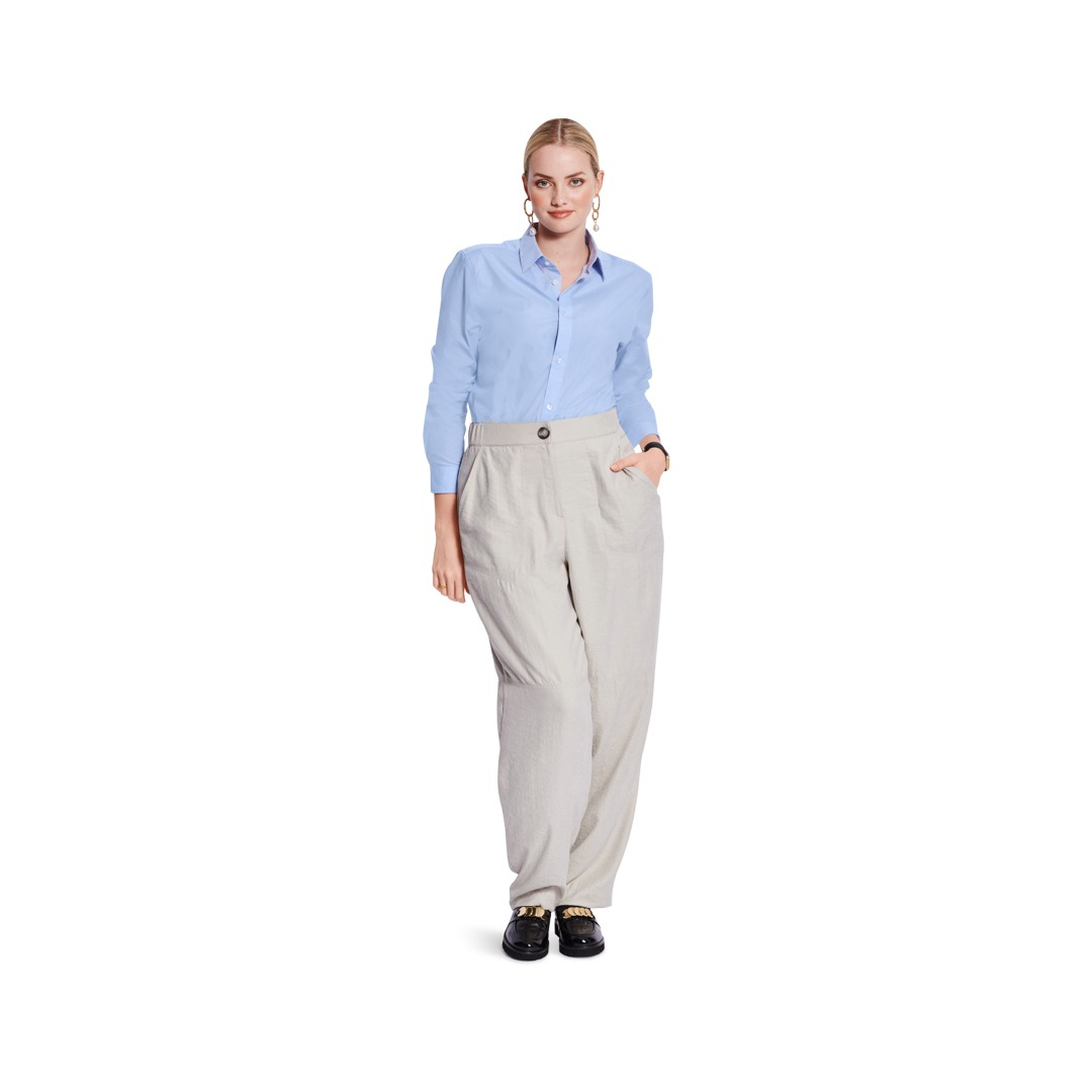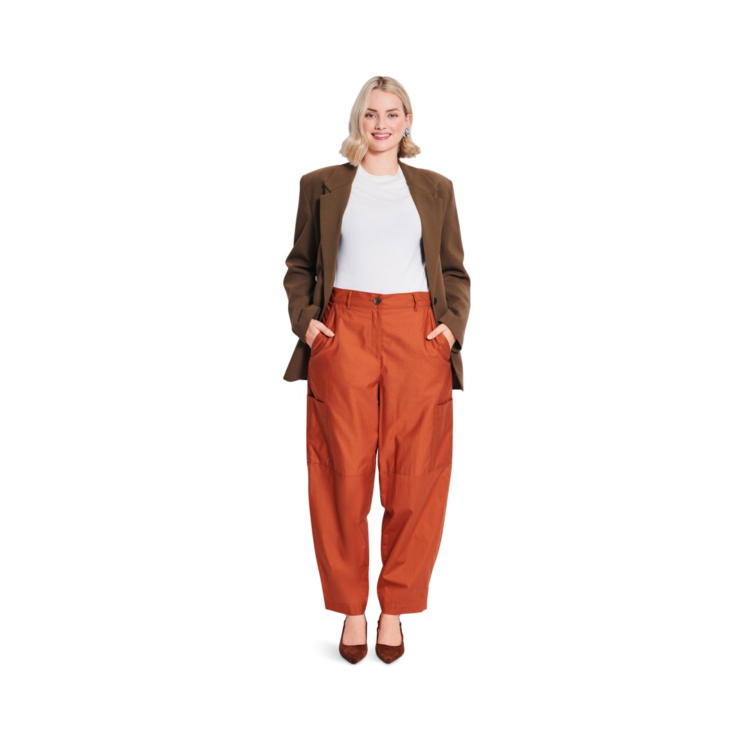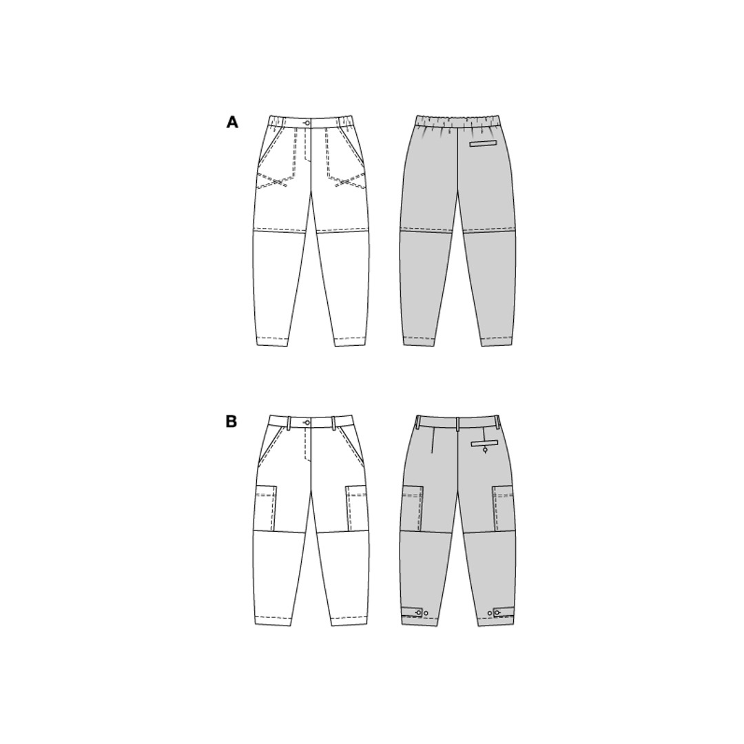 Questi due modelli di pantaloni sono ideali per sarte esperte. Il primo presenta eleganti pantaloni cargo con una leggera trapuntatura e un taglio sportivo ed elegante, perfetti sia per l'ufficio che per un look casual con le sneakers. Il secondo modello vanta una moderna forma a botte, tasche applicate e cinturini regolabili sull'orlo per un tocco personalizzato. Entrambi offrono infinite possibilità di stile e sono un must-have per il tuo guardaroba!