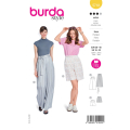 DescrizioneQuesto modello di pantaloni in stile burda offre due varianti versatili per le giornate estive: gli ampi pantaloni Marlene con pieghe e tasche sui fianchi sono perfetti per le occasioni formali quando fa caldo, grazie al tessuto rinfrescante in viscosa. Per un look rilassato ci sono gli eleganti pantaloncini con pieghe e tasche profonde, che rappresentano una pratica alternativa alla minigonna. Ideale per gli appassionati di cucito avanzati!