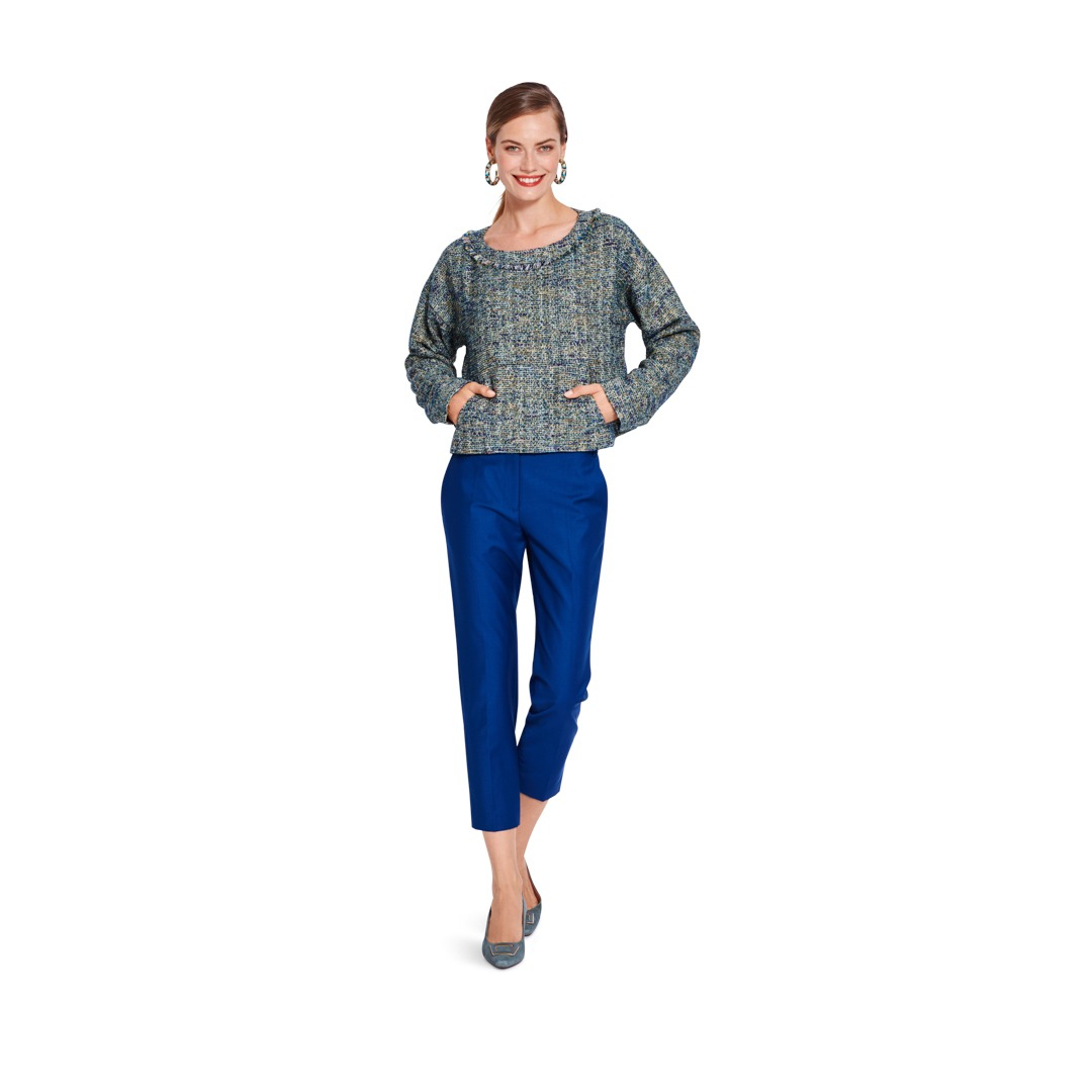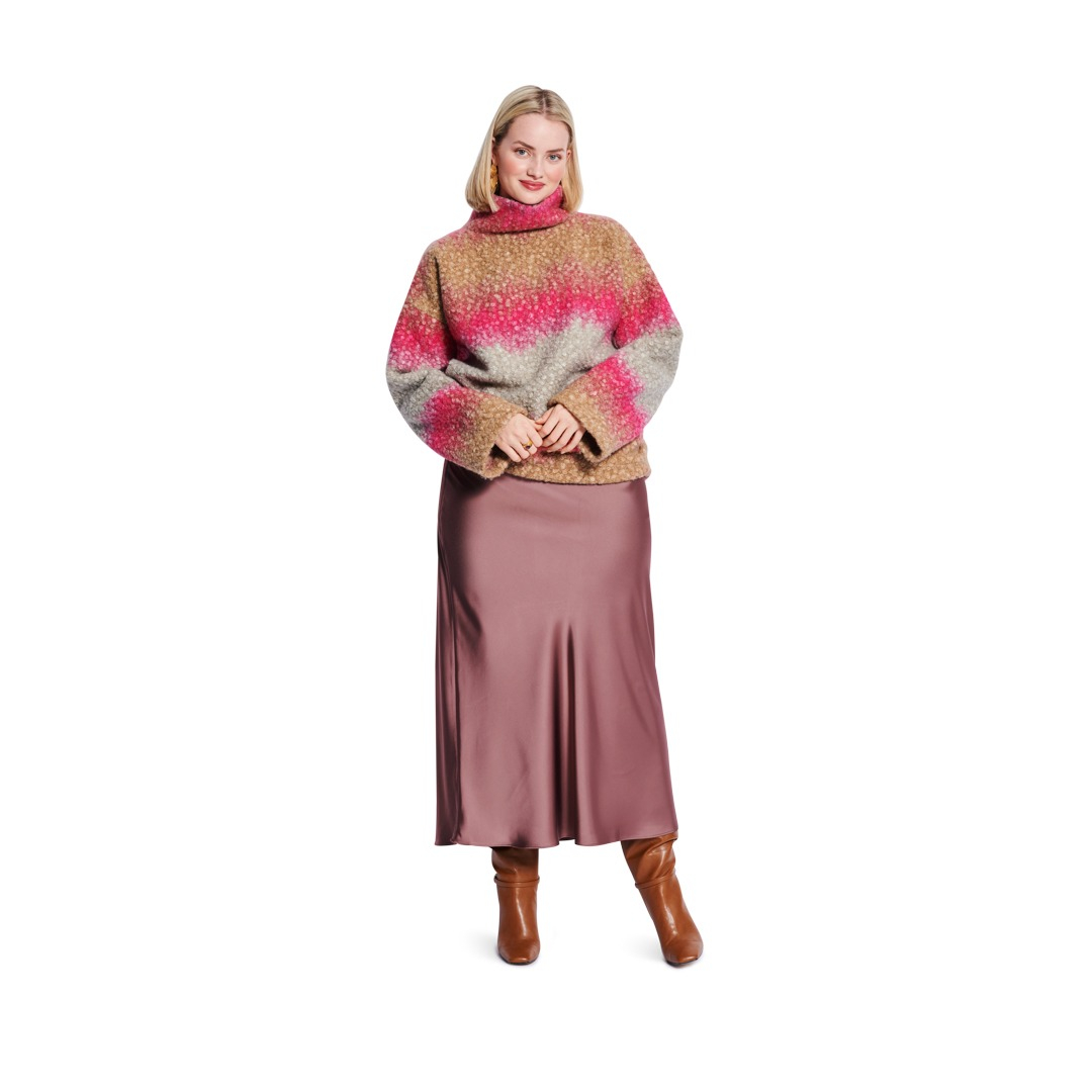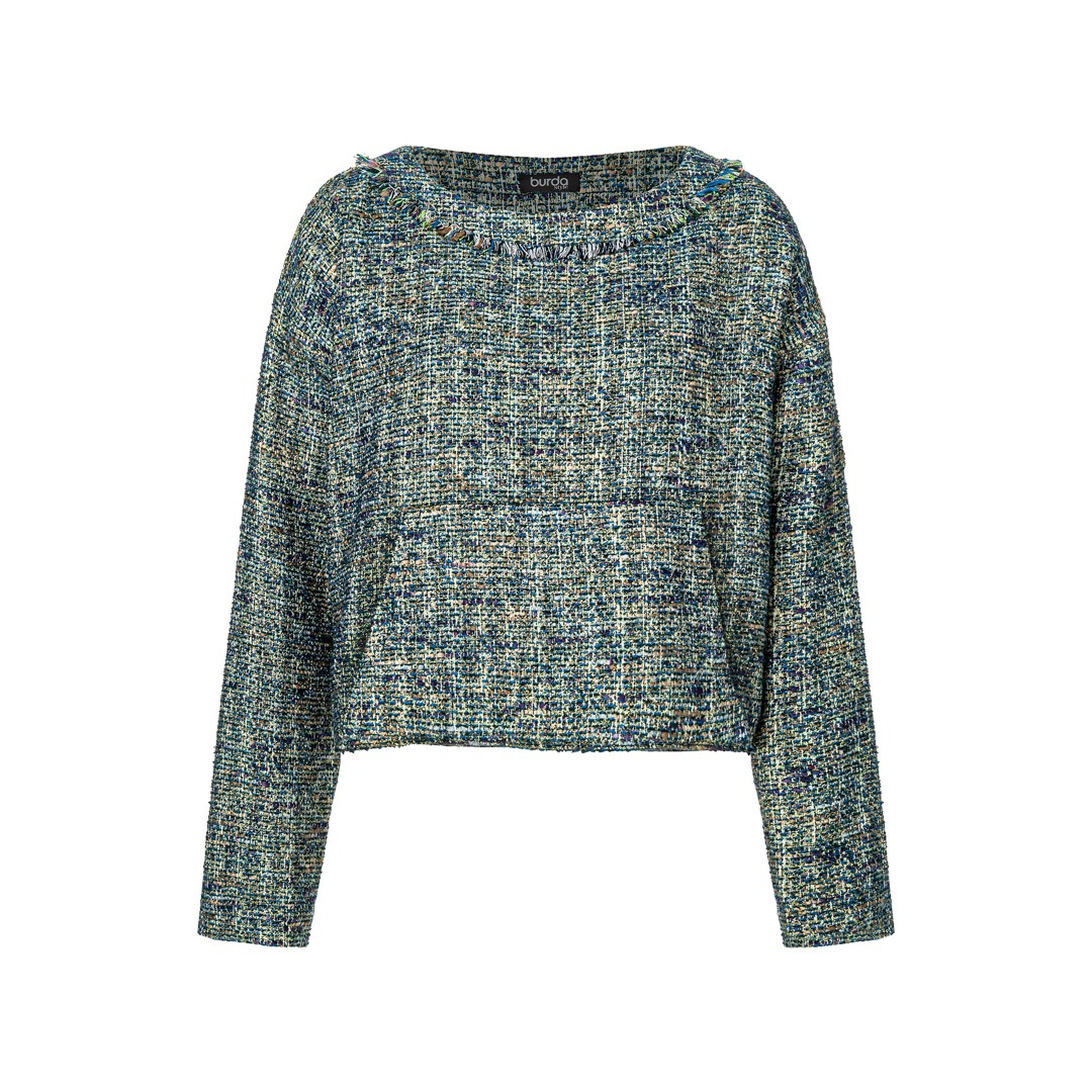Lasciati ispirare da questi due modelli di maglioni alla moda! Il primo è caratterizzato da un caldo bouclé con collo alto, che offre calore e stile, perfetto come abito chic in maglia. La seconda versione fonde l'elegante bouclé con tasche a marsupio sportive e una scollatura sfrangiata. Entrambi i modelli sono facili da cucire e aggiungeranno una ventata di freschezza al tuo guardaroba! Ideali per chi ama sarte e cerca capi comodi ma alla moda.