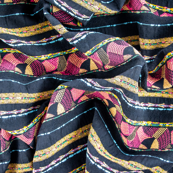 DescrizioneTessuto ricamato in misto cotone e poliestere.