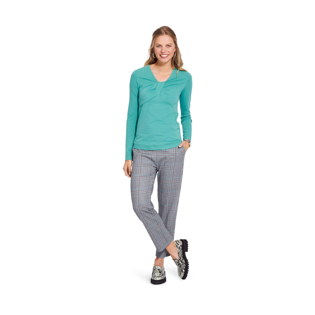Questi top sono davvero unici: una bella scollatura e il design asimmetrico con un tocco particolare danno loro un tocco speciale. Le maniche sono slim e possono essere lunghe o a 3/4 con una balza che fa la differenza.