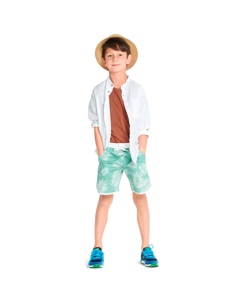 Ciao estate, stiamo arrivando! Tipici pantaloncini con bordi bordati sul fondo, con tasche, coulisse elastica e finta chiusura sportiva. Le maniche della camicia casual in stile hawaiano con taschino sul petto possono essere arrotolate. Pantaloncini e camicia sono un ottimo set da indossare insieme, ma sono anche fantastici coordinati nel guardaroba di ogni bambino da mescolare e abbinare.