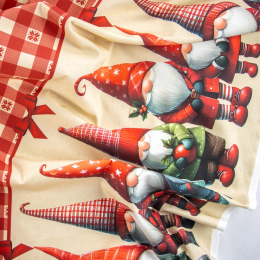 Tovaglia "piazzata" in larghezza 160 centimetri. Su entrambe le cimose la tovoglia presenta degli abbasamenti con decorazioni. Questa tovaglia è in cotone è adatta per confezionare tovaglie, centritavola e runner, per dare un tocco di colore e ricreare la magia del natale