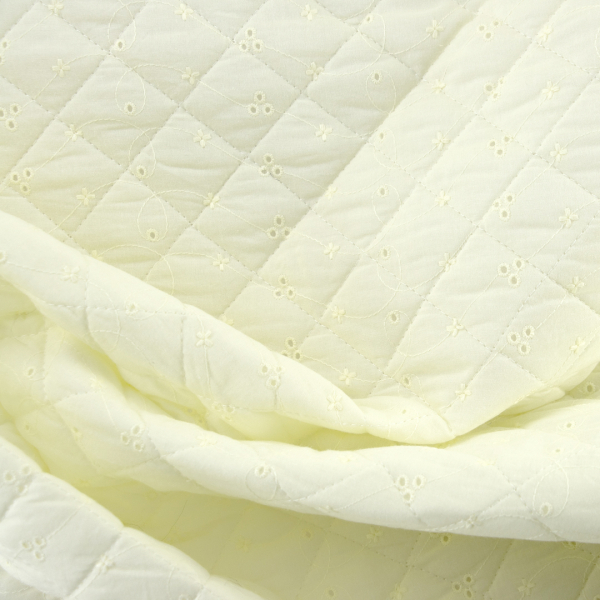 DescrizioneClassico tessuto trapuntato in piquet di cotone, si presenta con un tessuto in sangallo da un lato, un'ovatta in poliestere dall’altro che formano un tessuto morbido, comodo e caldo.