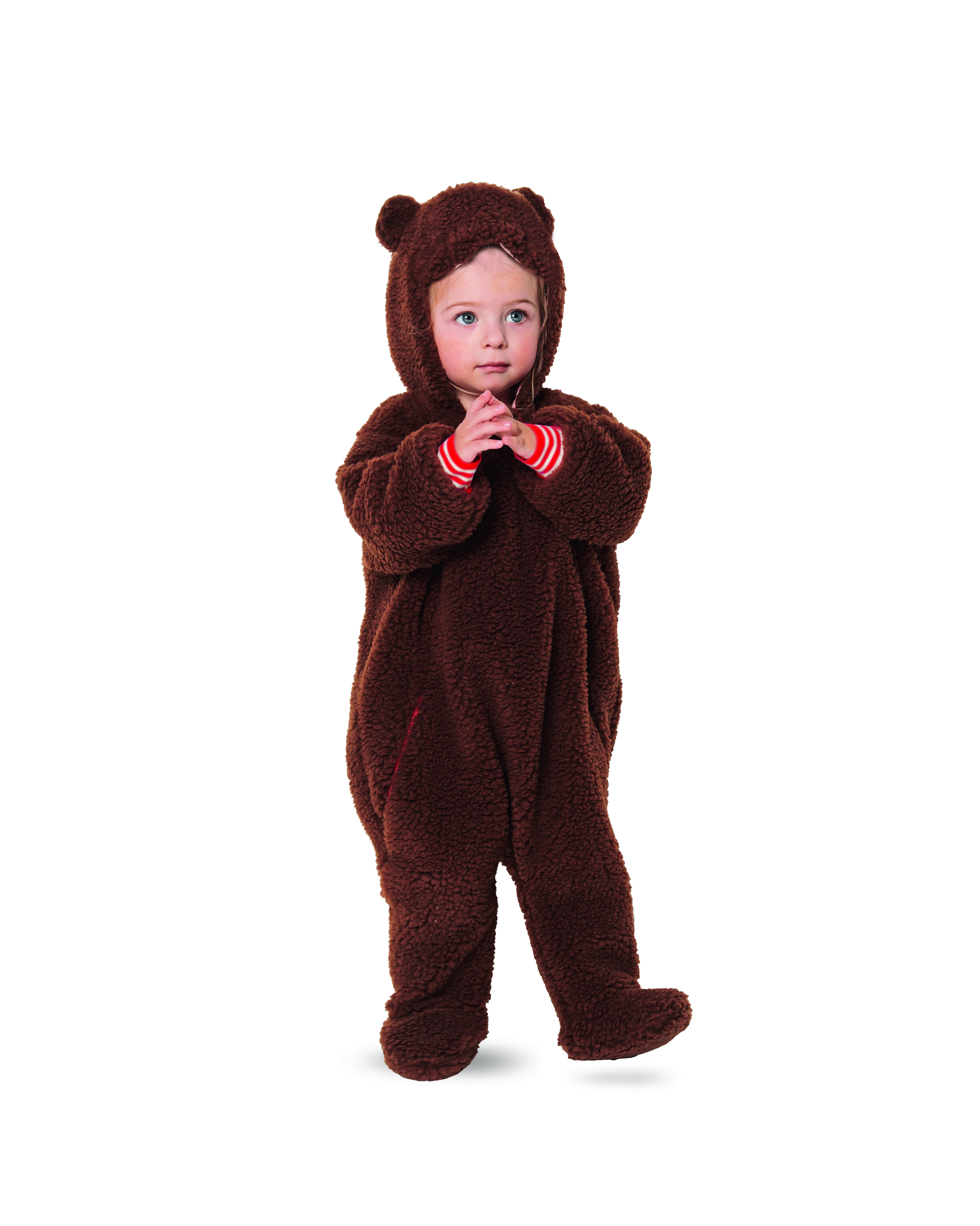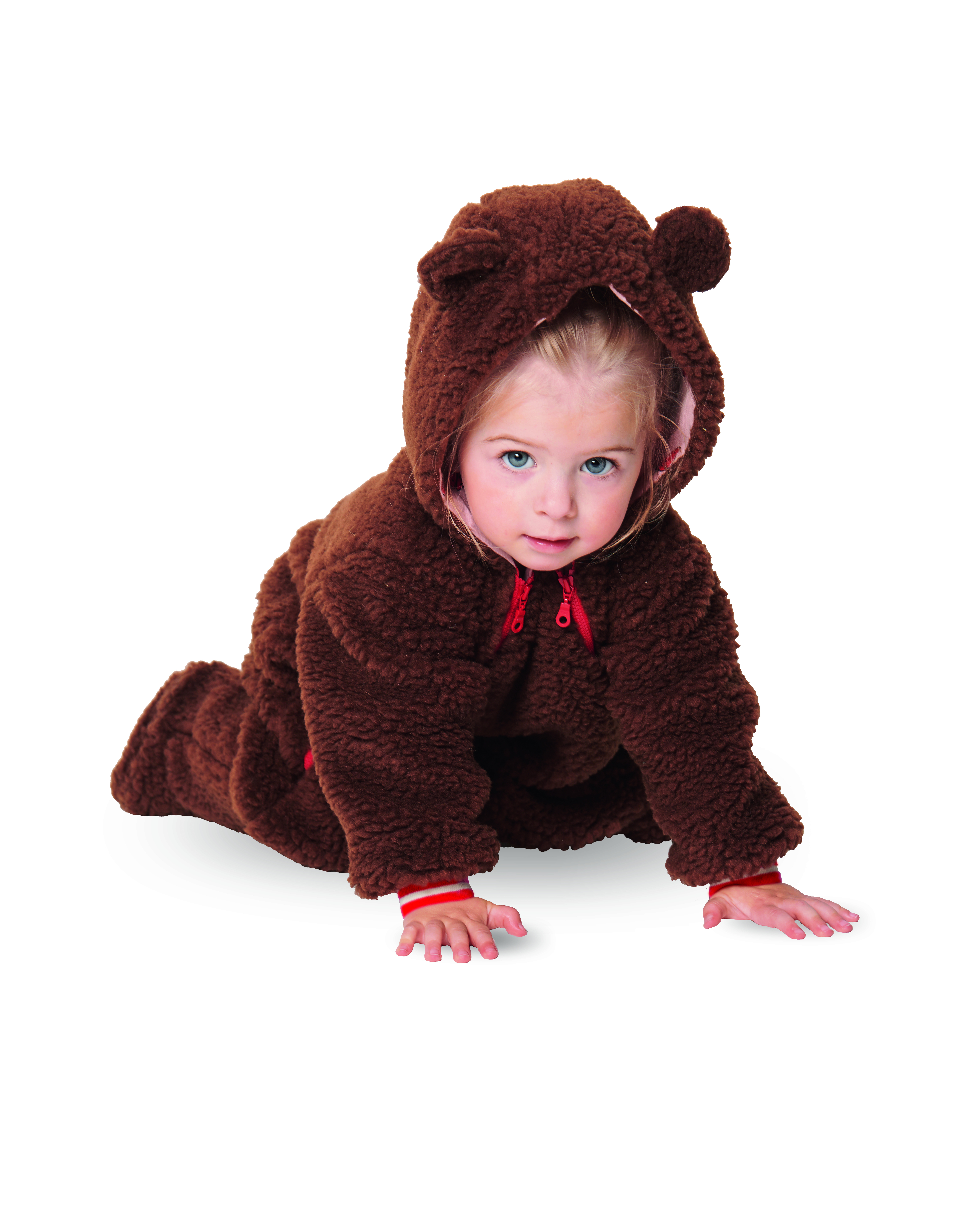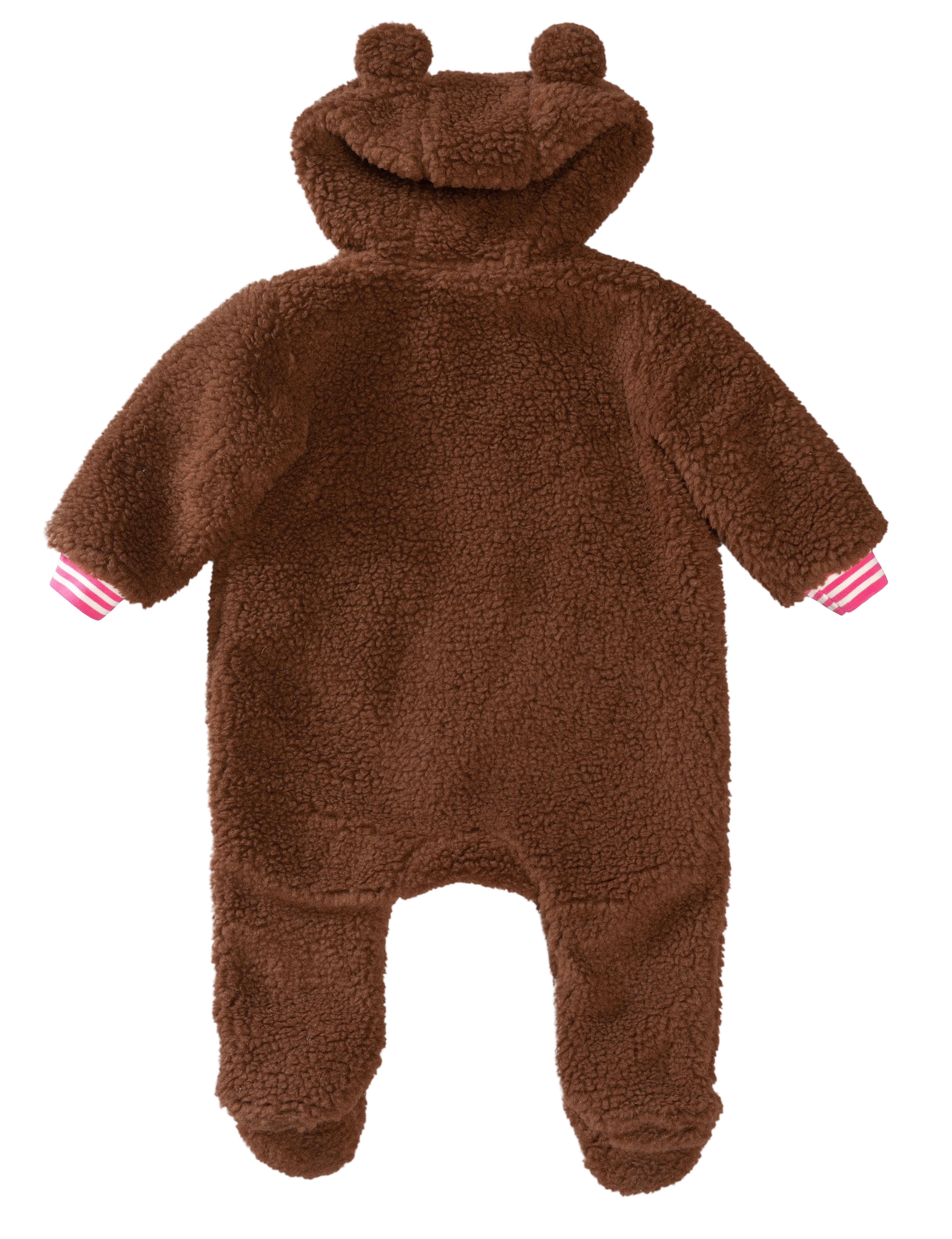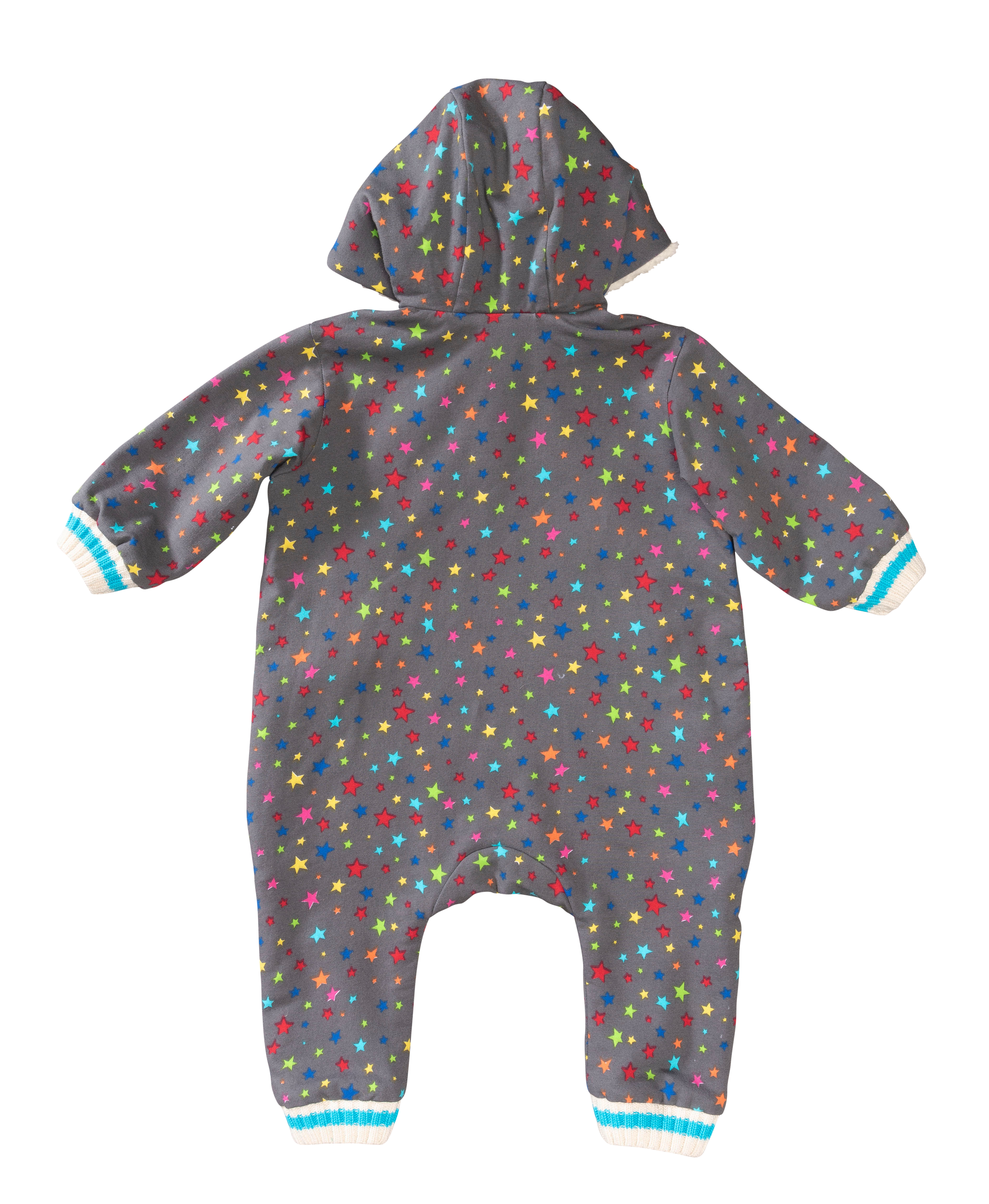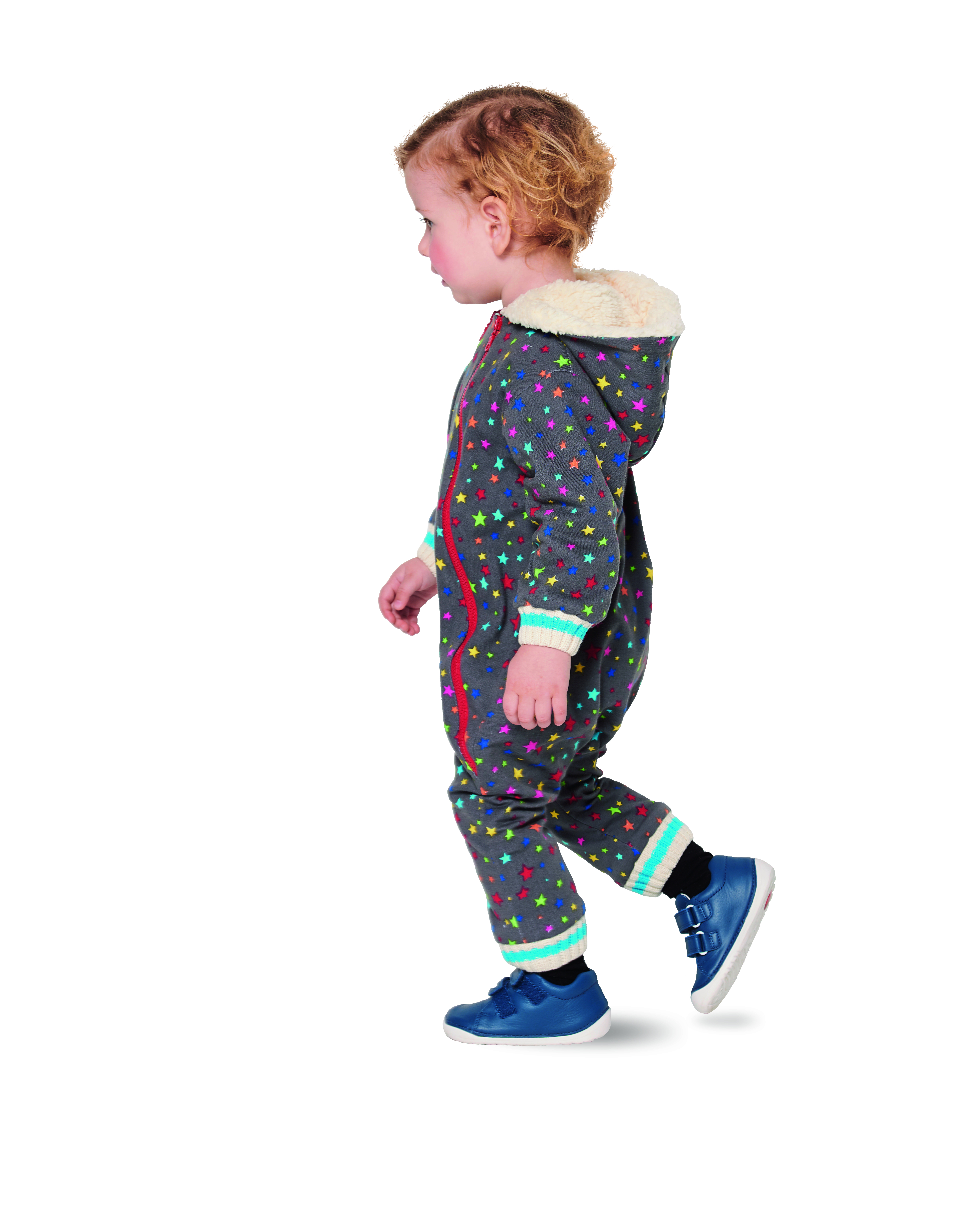 Le pratiche tute con cappuccio manterranno i nostri piccoli comodi e comodi. Entrambi sono doppi con tessuto a contrasto e hanno due lunghe cerniere per facilitare l'ingresso e l'uscita. Scegli tra piedi chiusi o fasce per le gambe. Tessuti consigliati: felpa, jersey, tessuto peluche teddy