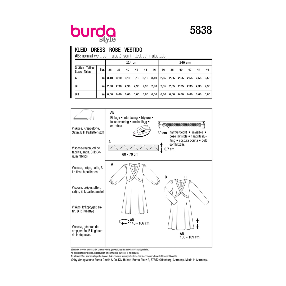 Un abito da sogno al ginocchio con maniche voluminose o piuttosto un abito nobile con maniche leggermente a sbuffo? Con questo set di cartamodelli li ottieni entrambi in uno. I pannelli incrociati evocano con il loro effetto dalla vita fino allo scollo una vera figura da sogno. Lasciati ispirare da questi fantastici modelli in stile burda e facili da cucire