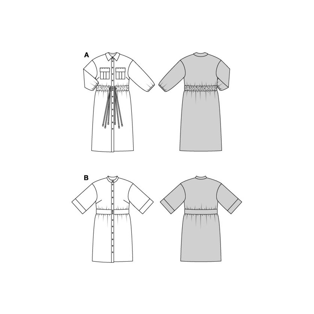 Gli abiti con bottoni si sentono ancora più rilassati in estate grazie al loro carattere di camicetta. Questi due modelli attirano l'attenzione con dettagli sofisticati intorno alla vita. Il taglio pratico dell'abito sottolinea la figura grazie alla tripla coulisse. Anche il pannello in vita dell'abito corto e i bottoni creano un bellissimo accento. Cuci semplicemente e goditi l'estate