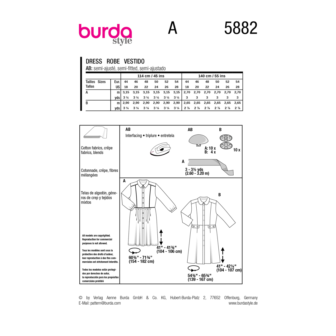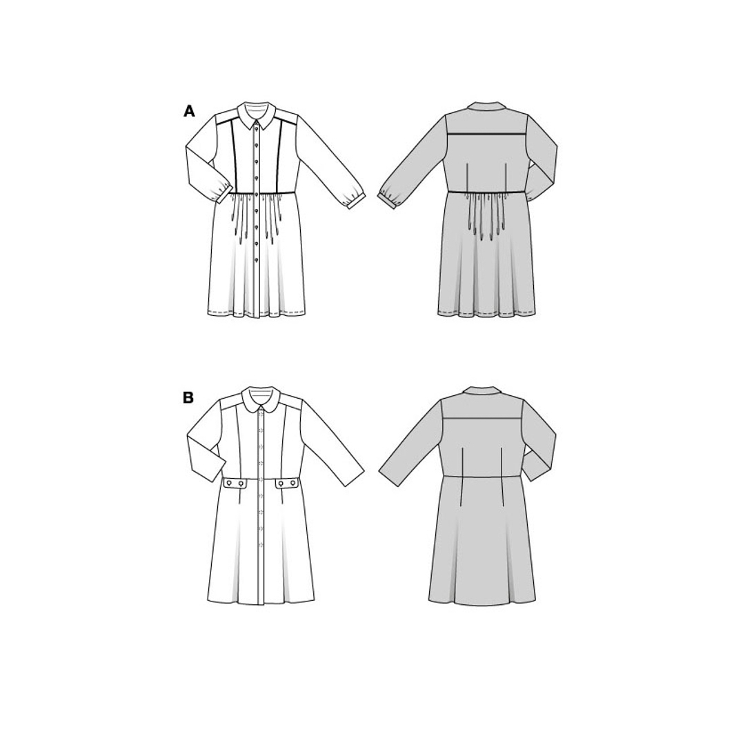 Due abiti chemisier in stili diversi: Vista A è realizzato in tessuto leggero e presenta fasce ai polsi e gonna arricciata. Le cuciture sono un dettaglio davvero speciale. La gonna dell'abito B è elegante e le maniche strette sono lunghe 3/4. Le alette decorative sono incastrate nella cucitura in vita.