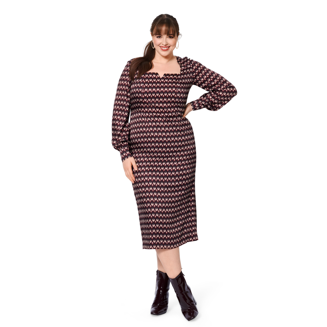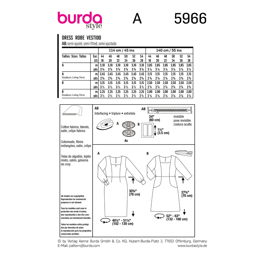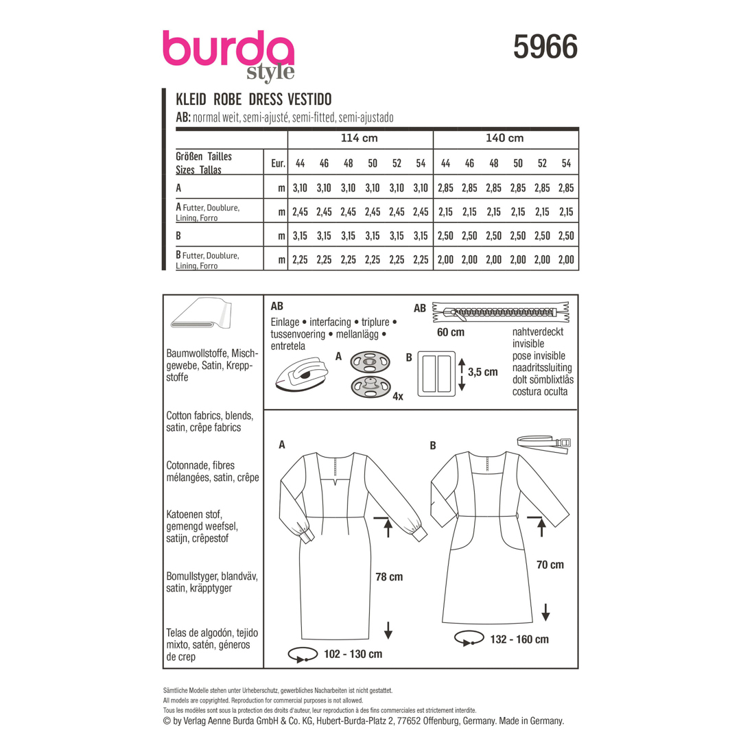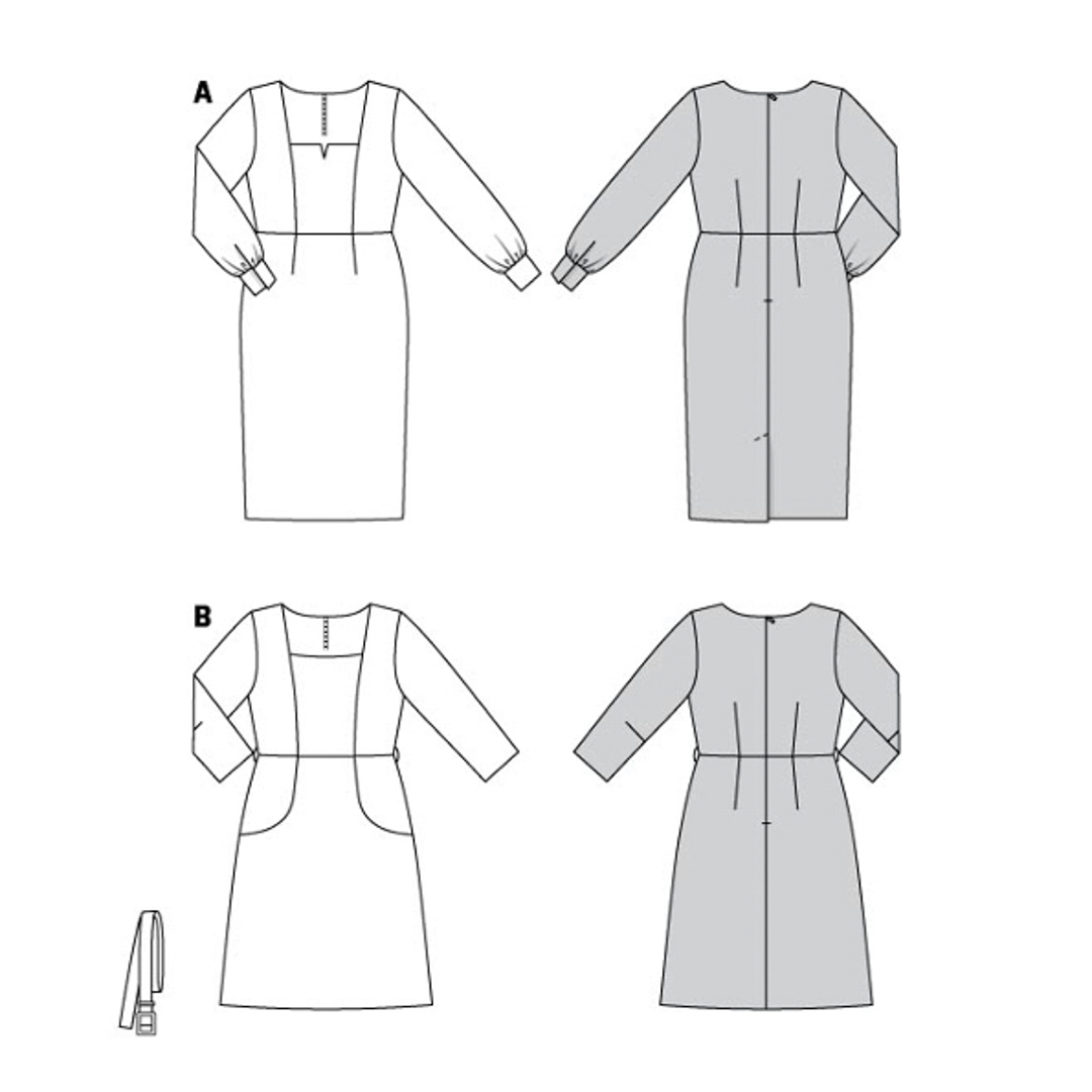 A volte vogliamo un po 'più chic ... qui hai la tua scelta: guarda una gonna stretta, maniche larghe con polsini e uno sfiato posteriore. Visualizza B presenta una gonna leggermente svasata con gioki e maniche più corte. Crea la cintura nello stesso tessuto per completare il vestito.